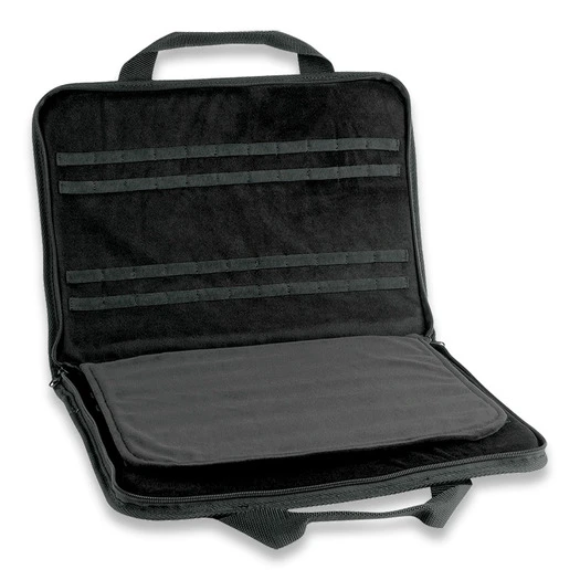 Dimensions: 559 mm x 381 mm; Other Info: Brown leather exterior with Case logo imprint and heavy black nylon handle. 100% cotton lining with thick foam padding and center separator to protect knives on each side. Perfect for storage, travel or display. Holds 44 knives.