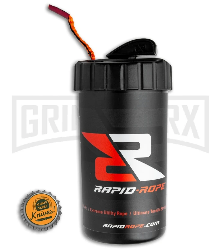 This orange Rapid Rope is an easy-to-use source of a ton of high-tensile-strength rope. The rope is made to withstand a 1100-pound working load, and it stows away neatly inside the cup. The lid of the cup has an integrated blade that cleanly cuts the rope, and holds the end secure afterward. The Rapid Rope is a must-have in any car, boat, or bag.