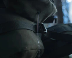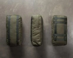 Medium size six litre backpack side pouch with rudimentary internal organization and external compression strap loops.