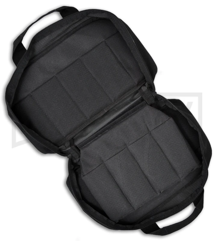 If you are looking for a way to store or transport your knives then check out the Zero Tolerance double zippered case with 18 padded pockets for your folding knives. Velco attached sleeve can be removed for adaptability. The pockets are roughly 2.25″ x 4.5″ and the case is 13″ x 7.5″ x 4″ thick. Features convenient carry handles for transport.